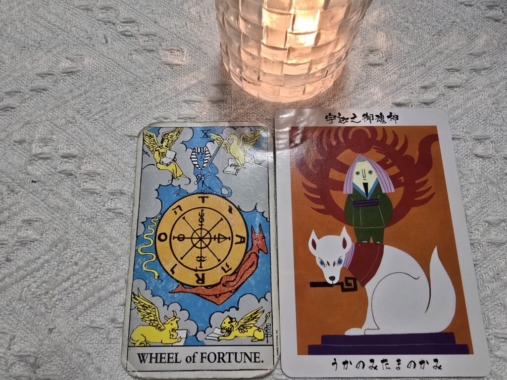 本日のメッセージの『運命の輪』『宇迦之御魂神(稲荷大明神様)』からのメッセージとも繋がりました。気づいたから運命の輪が廻り始めるのですね。宇迦之御魂神様は『稲に就く神』でまた、五穀豊穣・商売繁盛の神様です。