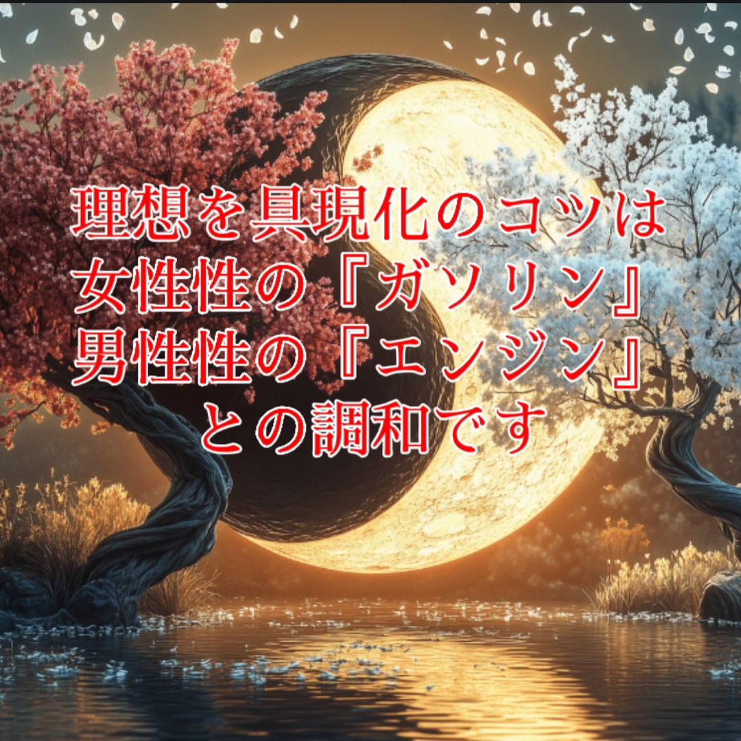 ガソリンが満ち(女性性)、エンジンが動い(男性性)てこそ、あなたの人生という車は前に進みます。