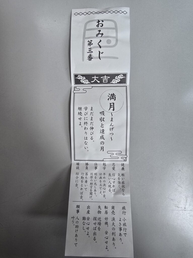 本日1月3日は、蟹座の満月(私は太陽星座・月星座も蟹座です)で、【3番満月のおみくじ】で大吉でした😌🌸💕