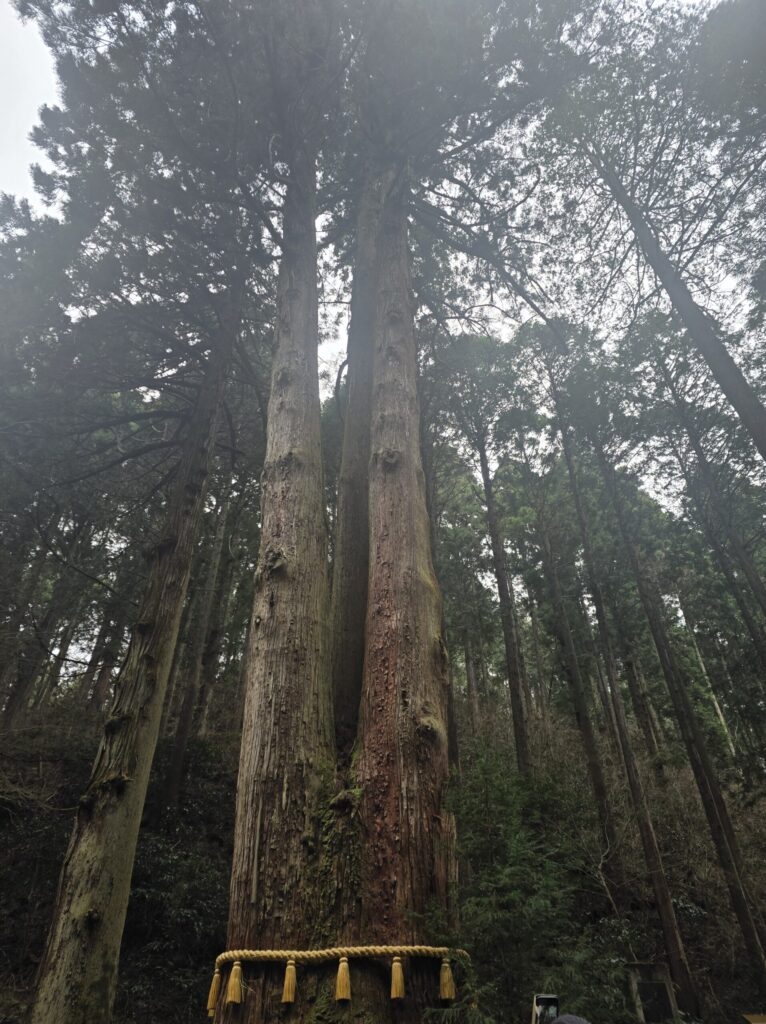 樹齢600年になる『三本杉』。この三本杉のしめ縄を奉納した地元企業は、この後とても大きく栄えました。