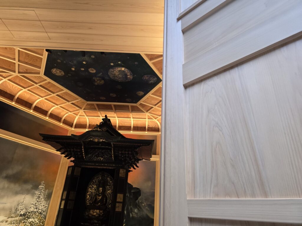 太鼓が鳴り響き、また、この日は、大日如来様が御開帳されているためか、説明している方がいましたね。大日如来を祀られてある天井には、宇宙が描かれてあります。