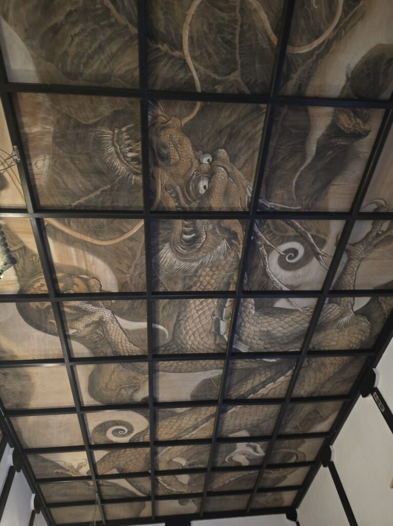 阿弥陀如来が祀られている天井には、大迫力の『雲龍図』