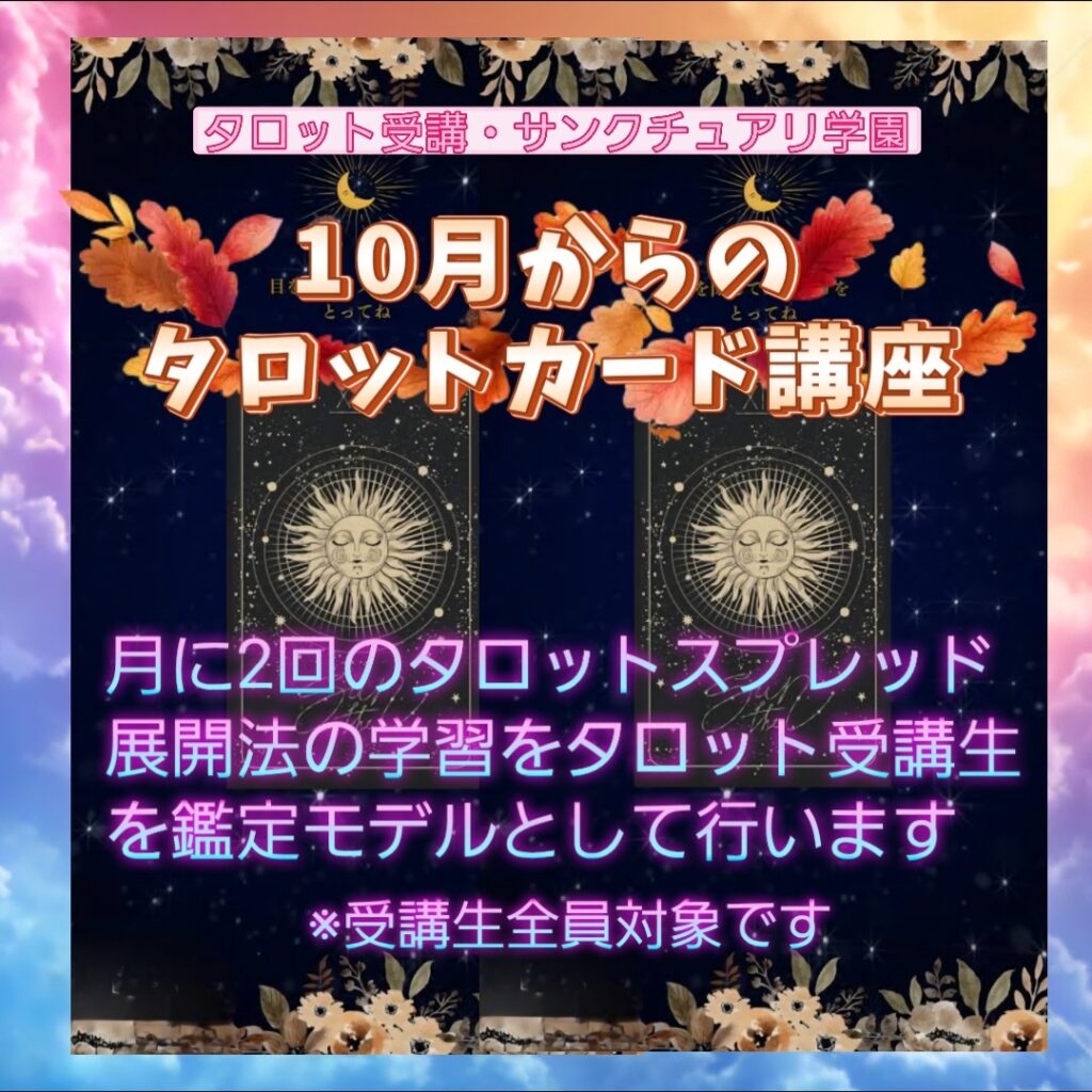 10月からタロットカード講座では、月に2回のタロットスプレッド展開法での解説動画では、タロット受講生をモデル鑑定致します。