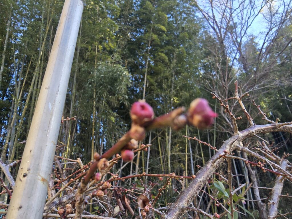 庭に出ると、梅の木の蕾が先日よりもふっくらと膨らみはじめていました。