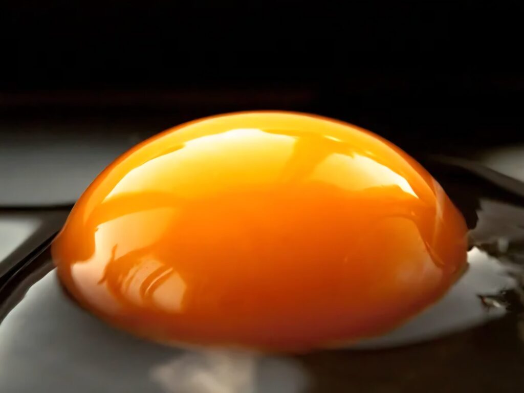 新鮮で元気な卵は、『黄身と白身がぷっくり』と盛り上がり一体化しています。