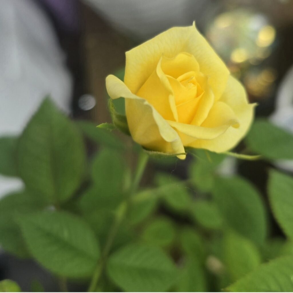 オフィスの片隅で、一輪の黄色い薔薇が花開きました。