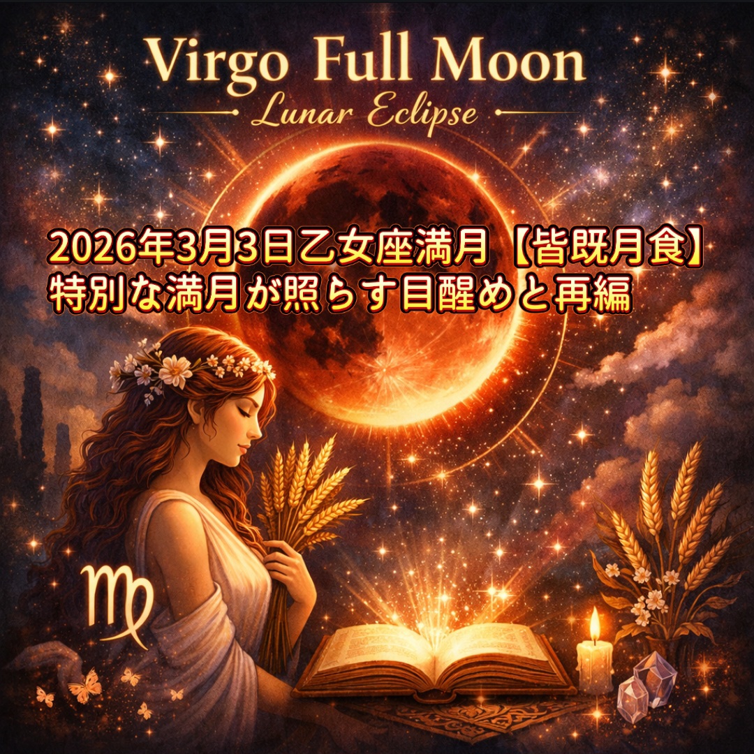 2026年3月3日20時38分、乙女座12度89分で『皆既月食』を伴う満月を迎えます。